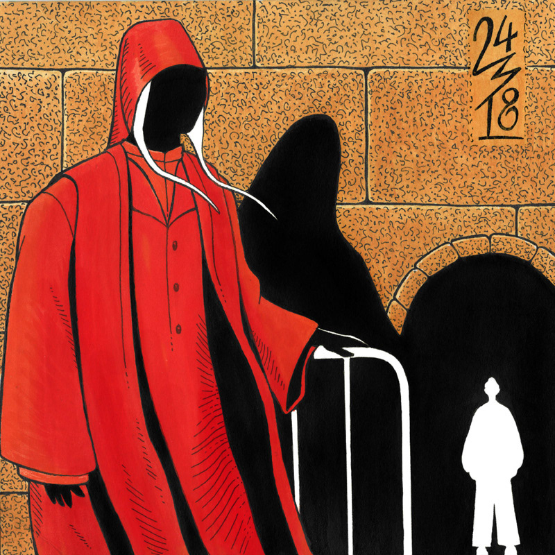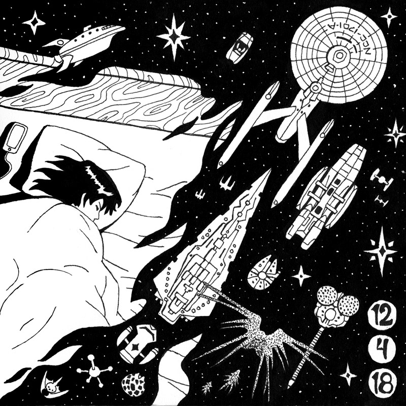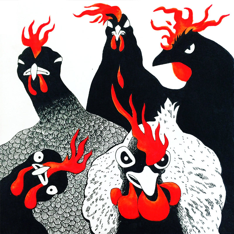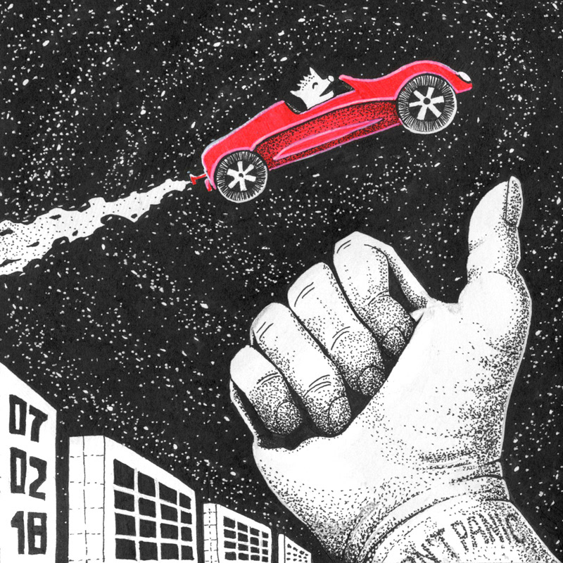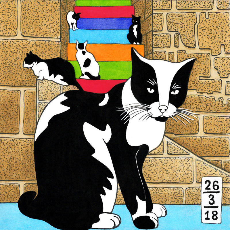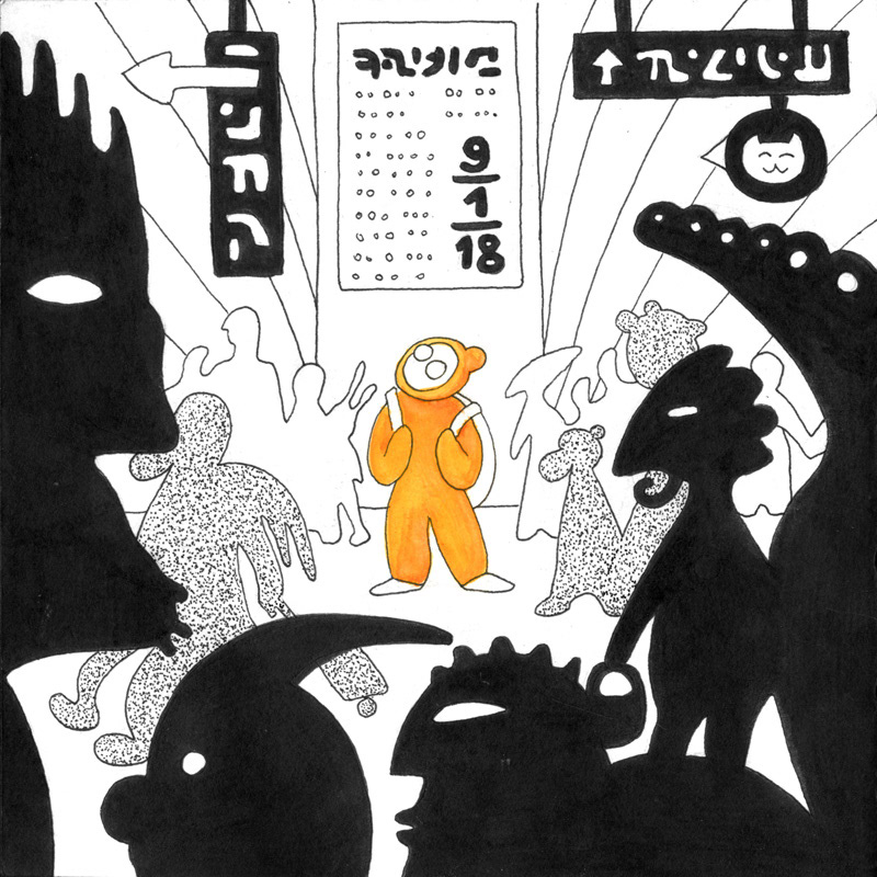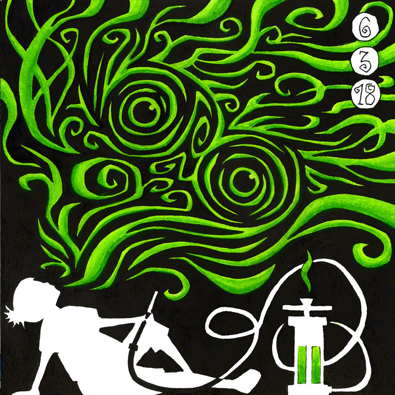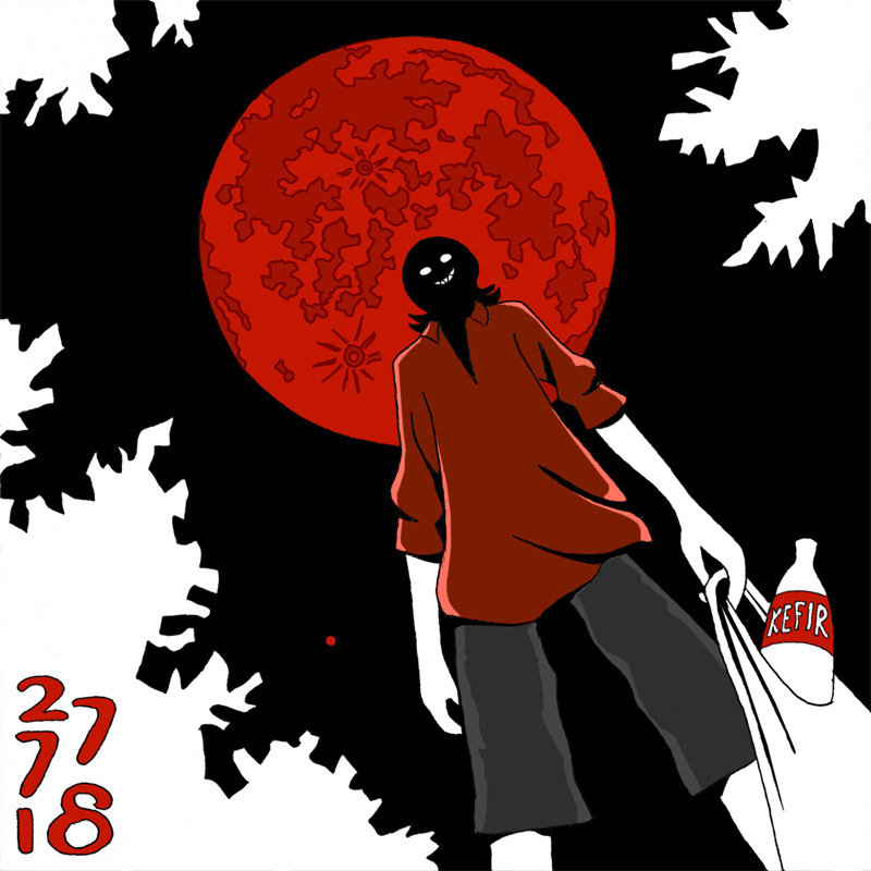 События повседневной жизни, перьевая ручка, маркеры и пара капель акварели (2018).
