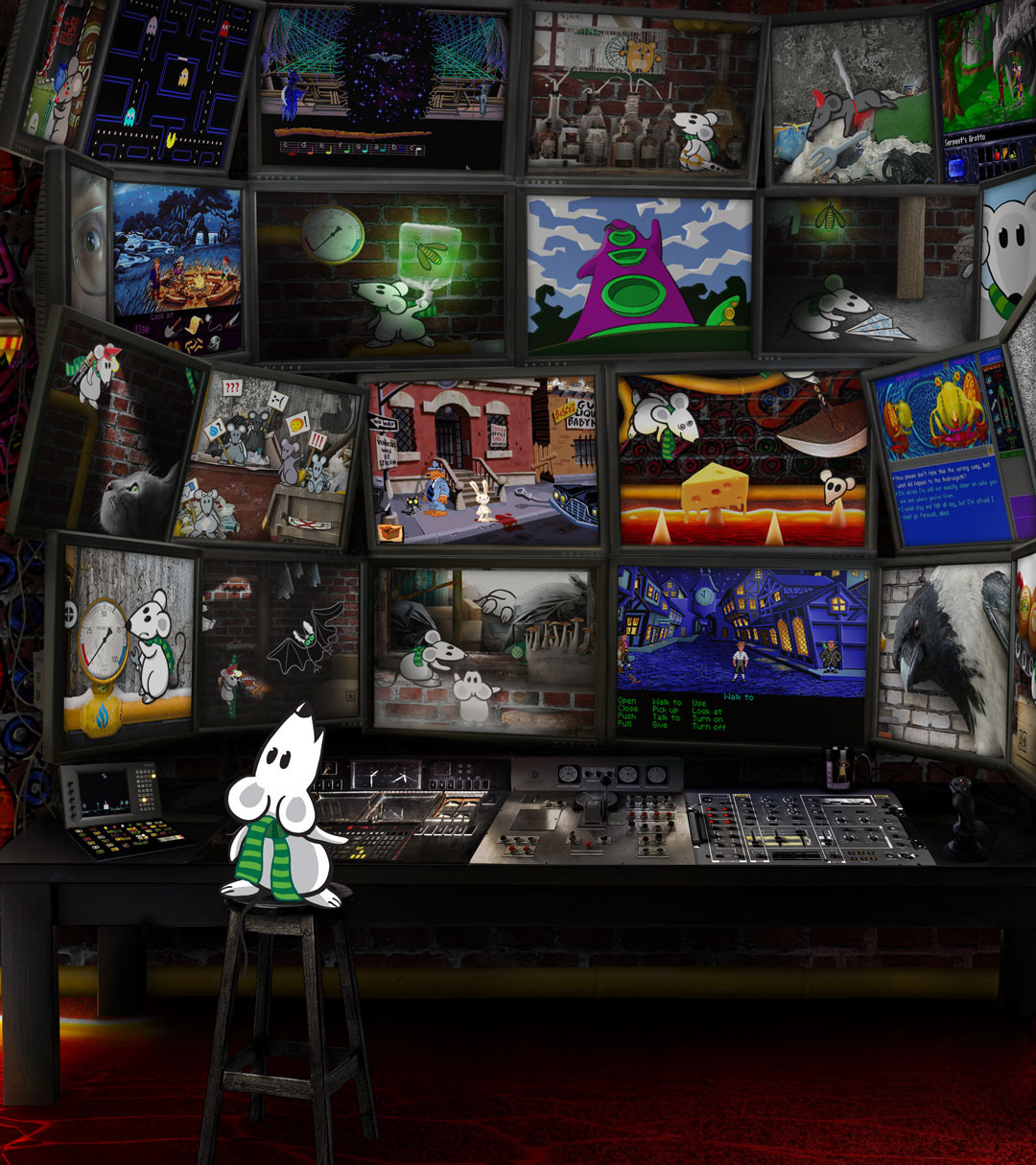 Моя книга представляла собой концепт компьютерной игры в жанре «квест»: с персонажами, сюжетом и типичными для этого жанра загадками в стиле «соберём все предметы, не прибитые к фону и используем максимально смешным способом». Действие происходит в сказочном мире, где мыши и другие существа живут внутри и возле многоэтажного панельного дома и пользуются всеми благами людской цивилизации. Внезапно у них кончается газ, и главный герой отправляется вдоль жёлтой газовой трубы, чтобы найти причину катастрофы. Добро пожаловать на нашу помойку! :)
